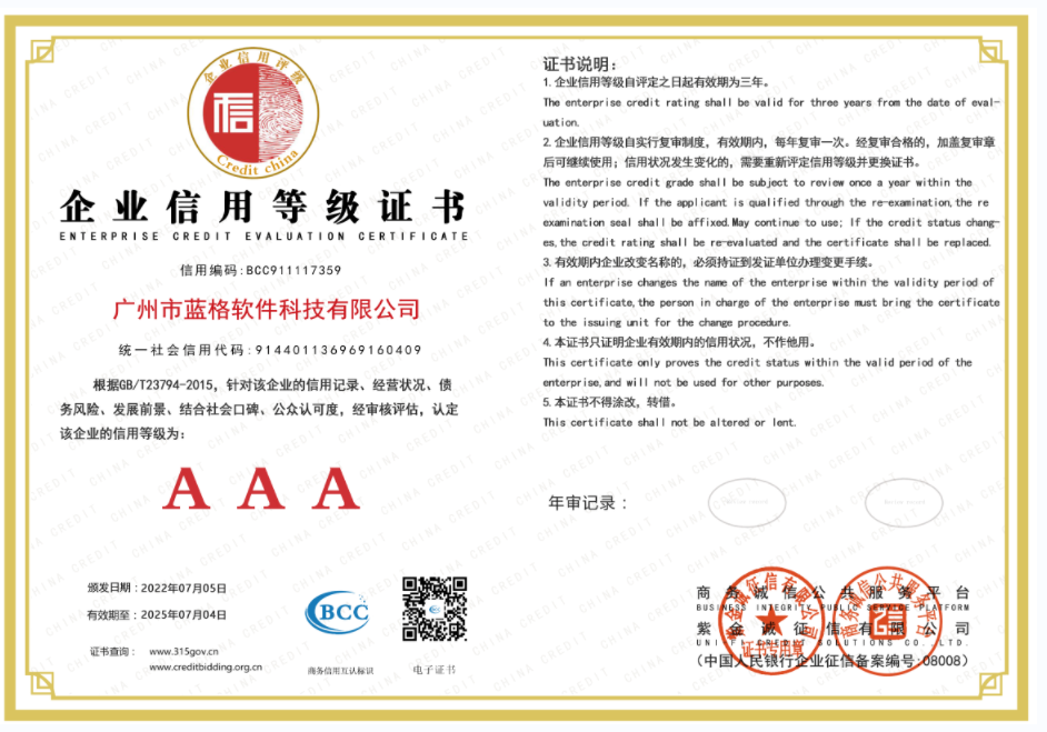 連續3屆9年,獲得國家“高新技術企業證書”;獲得“中國軟件行業信用等級AAA”證書;累計獲得36項軟著證書。